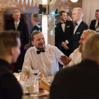 Näissä häissä oli melko paljon ohjelmaa myöhäiseen iltaan saakka, mutta silti rento aikataulu. Oma suosikkini oli ehdottomasti sulhasen äidin perinteisen puheen sijasta pitämä stand up -esitys. Sille naurettiin vedet silmissä. Illalla kuvattiin vielä lisää potretteja juhlapaikan tuntumassa, kun pilviverho repesi ja saimme nauttia ihanasta auringonlaskusta.